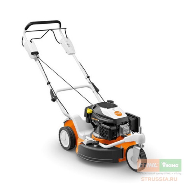 Мощная самоходная трёхколесная многофункциональная газонокосилка MB 3 RT с двигателем Stihl EVC 300. Трёхколесная конструкция с поворотным передним колесом делает газонокосилку особенно маневренной. Это значительно облегчает скашивание травы вокруг деревьев и кустов, а также на фигурных газонах. В зафиксированном положении или в свободном: вращающееся переднее колесо 3-колесных многофункциональных косилок MB 3 RT позволяет легко маневрировать. А для кошения не очень крутых склонов и аккуратной стрижки краев его можно зафиксировать.