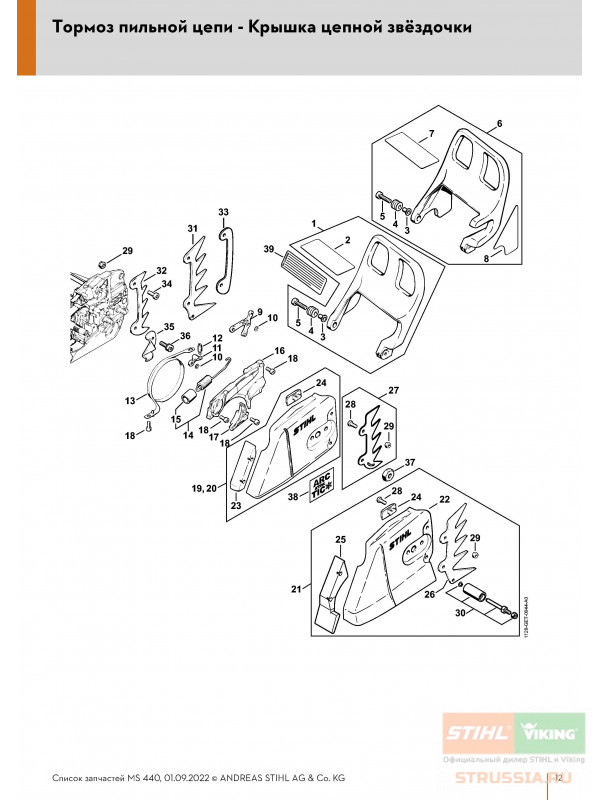 Тормоз пильной цепи - Крышка цепной звёздочки