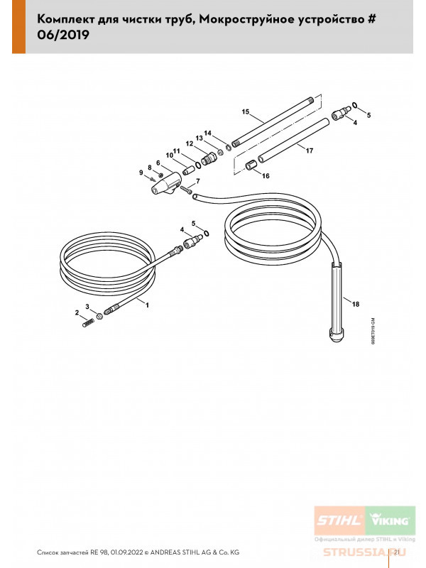 Комплект для чистки труб, Мокроструйное устройство # 06/2019